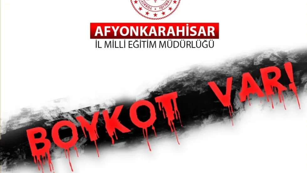 Afyonkarahisar İl Milli Eğitim Müdürlüğü, Filistin'de yaşanan zulme karşı bir tepki olarak İsrail'e açıkça destek veren ürün ve markaların boykot edilmesi çağrısında bulunuyor.