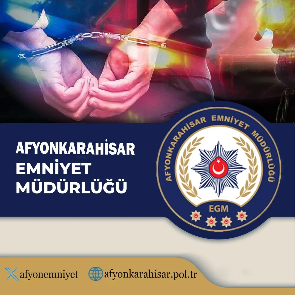 Afyonkarahisar İl Emniyet Müdürlüğü ekipleri, kasten yaralama, uyuşturucu ticareti, silahla tehdit, kişiyi hürriyetinden yoksun kılma ve basit yaralama gibi suçlardan hakkında 11 yıl 9 ay 17 gün kesinleşmiş hapis cezası bulunan Y.E.B.'yi tespit etti.