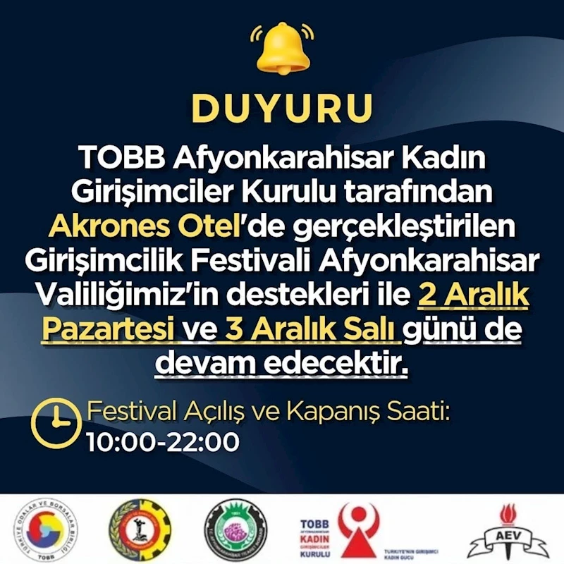 Bu festival, kadın girişimcilerin iş dünyasındaki varlıklarını güçlendirmeleri için eşsiz bir fırsat sunuyor. Afyonkarahisar Valiliği'nin desteğiyle, katılımcılar farklı alanlarda bilgi alışverişinde bulunabilecek ve yeni iş fikirleriyle buluşabilecek.