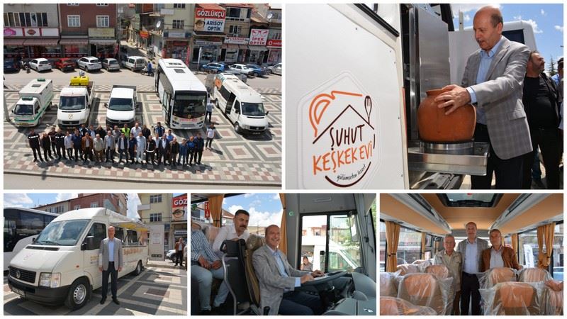 Şuhut ilçe meydanında sergilenen araçları tek tek inceleyen Şuhut Belediye Başkanı Recep Bozkurt hizmet binasında çalışan personel ile hatıra fotoğrafı çektirdi. İnceleme sırasında kendisine eşlik eden vatandaşlara Başkan Bozkurt araçlar hakkında tek tek bilgi verdi. İnceleme sonrasında konuşan Başkan Bozkurt “Bugün çok mutluyuz. Araç filomuzu genişletmeye, belediyemize yeni araçlar kazandırmaya devam ediyoruz ve bundan sonra da devam edeceğiz. Araçlarımızı biraz anlatacak olursak 1 adet keşkek tanıtım ve ikram aracı,1 adet 0 km ısuzu marka yolcu otobüsü,1 adet 0 km vw transporter marka pikap araç, ilaçlama aracı ve cenaze nakil aracımız var. Vatandaşlarımıza en iyi ve en kaliteli hizmeti en hızlı bir şekilde ulaştırma adına bundan sonra da araç filomuzu genişletmeye devam edeceğiz. Yeni aldığımız araçlarımızın ilçemize ve vatandaşlarımıza hayırlı olmasını diliyorum” dedi.