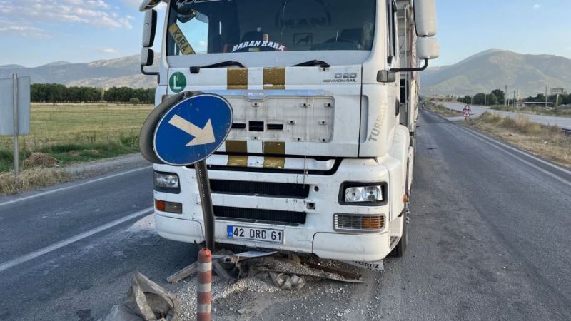 Kaza, genç sürücü Ö.K.'nin direksiyon hakimiyetini kaybetmesiyle yaşandı ve tır yolun orta kısmında bulunan trafik yön levhalarına çarptı.