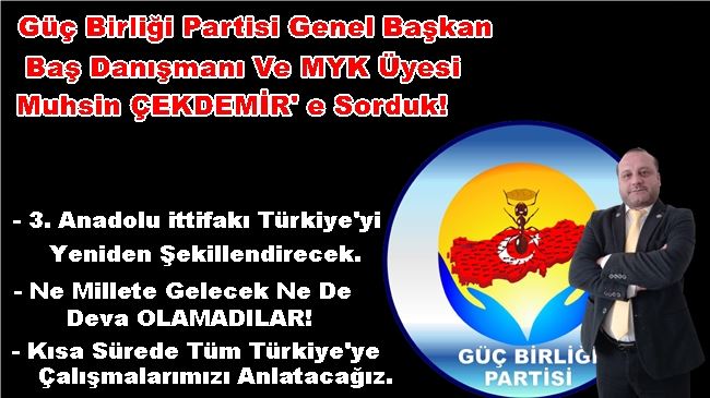 Güç Birliği Partisi Genel Başkan Baş Danışmanı ve MYK Üyesi Muhsin ÇEKDEMİR, yerel basına gündeme dair açıklamalarda bulundu. Sayın ÇEKDEMİR sorulan sorulara şu şekilde cevap verdi;