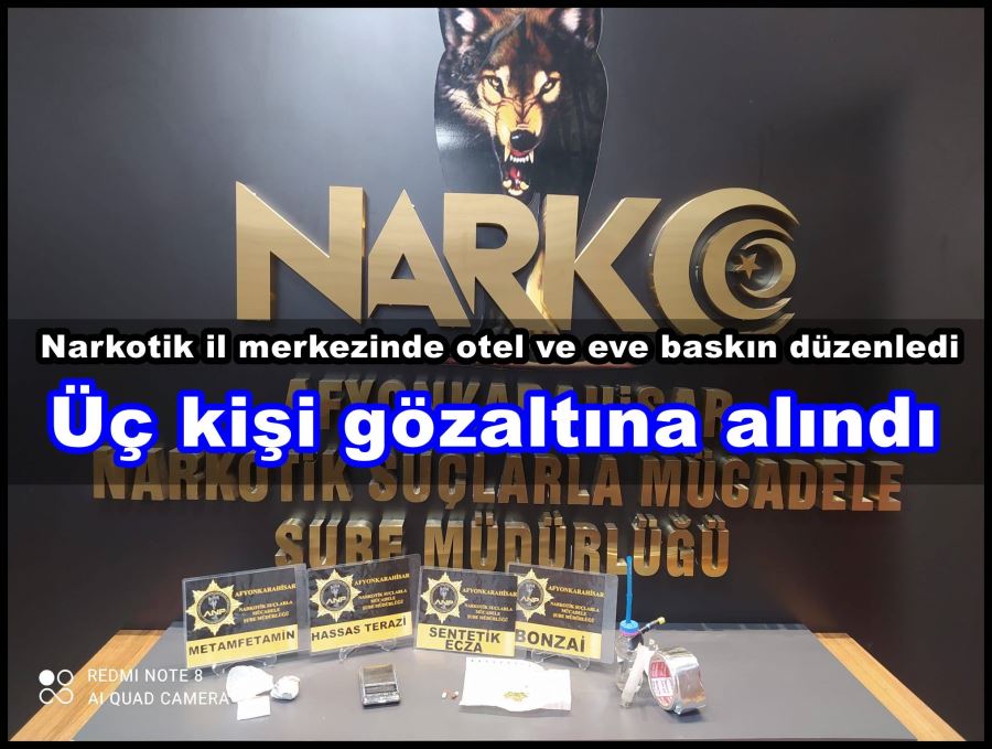 Edinilen bilgiye göre Narkotik Suçlarla Mücadele Şube Müdürlüğü ekipleri, il merkezinde belirlenen bir adreste uyuşturucu madde ticareti yapıldığı yönde bilgi elde etti. Narkotik ekipleri Cumhuriyet Savcılığından alınan talimat doğrultusunda bahsi geçen otel ve ikamette arama gerçekleştirdi.