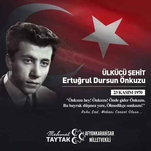 Milliyetçi Hareket Partisi Afyonkarahisar Milletvekili Mehmet Taytak, Ülkücü Şehit Ertuğrul Dursun Önkuzu'yu vefatının yıl dönümünde unutmadı. Taytak, sosyal medya üzerinden yaptığı paylaşımda, Önkuzu için "ruhu şad, mekanı cennet olsun" dileklerinde bulundu.